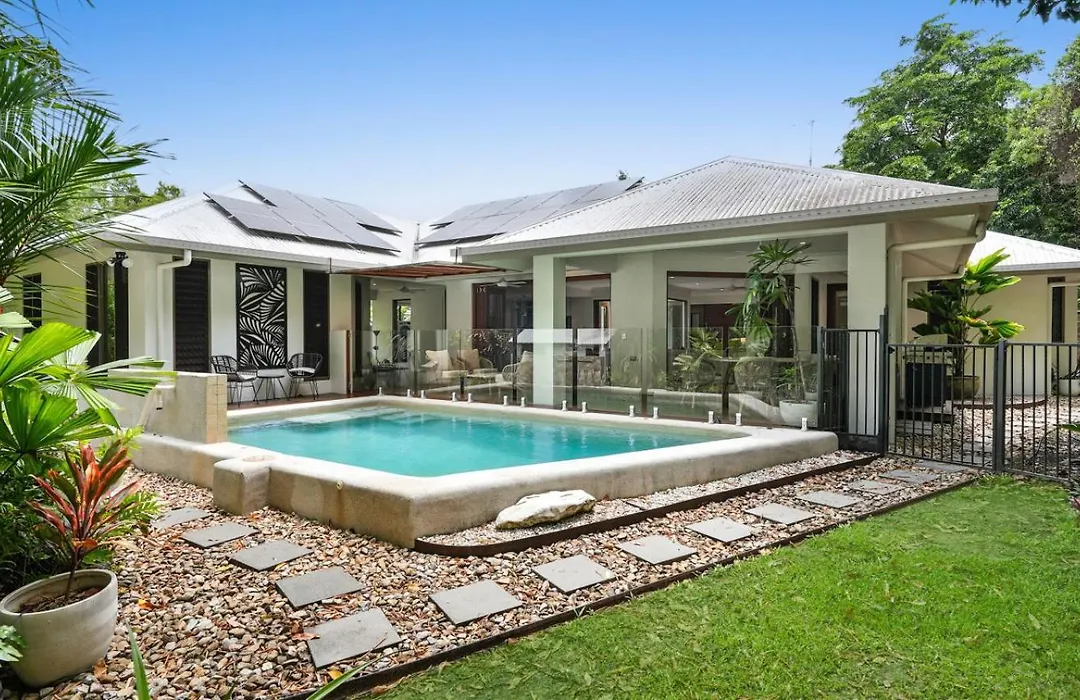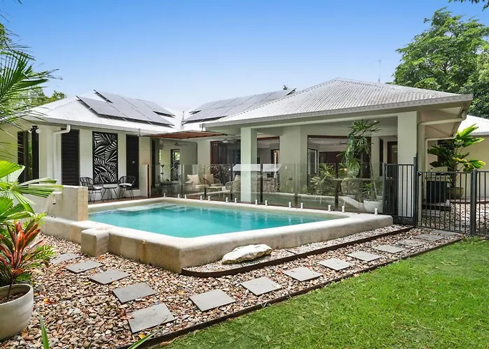 Shambala At Palm Cove Villa Palm Beach ligt binnen 700 meter verwijderd van Cairns Night Zoo en biedt gasten de mogelijkheid om te ontspannen bij een zwembad.